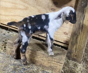 Eliya writes: “COMET is a buck that combines some of my favorite smaller lines and well attached udders. His dam Grace, is only 25″ tall, but a good milker with a gorgeous udder that is tightly attached and easy to milk. On his sire’s side, he has Trillium, who was also a smaller doe at just under 25” and also produced a lot of milk from a VERY tightly attached udder.