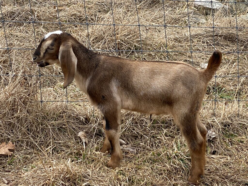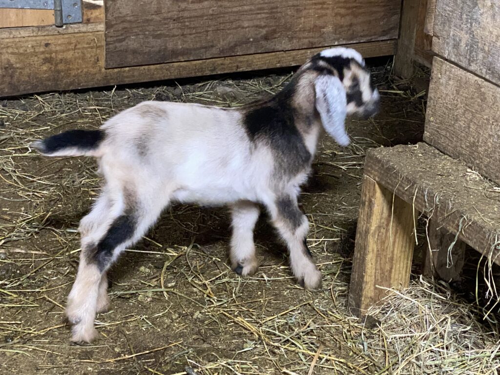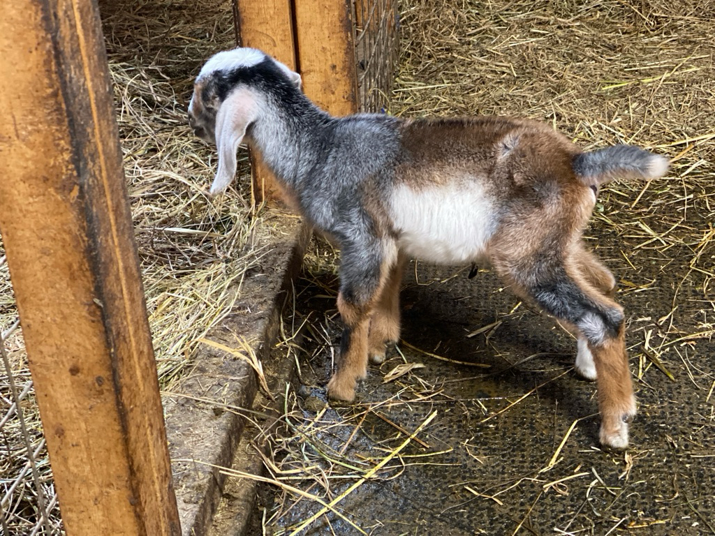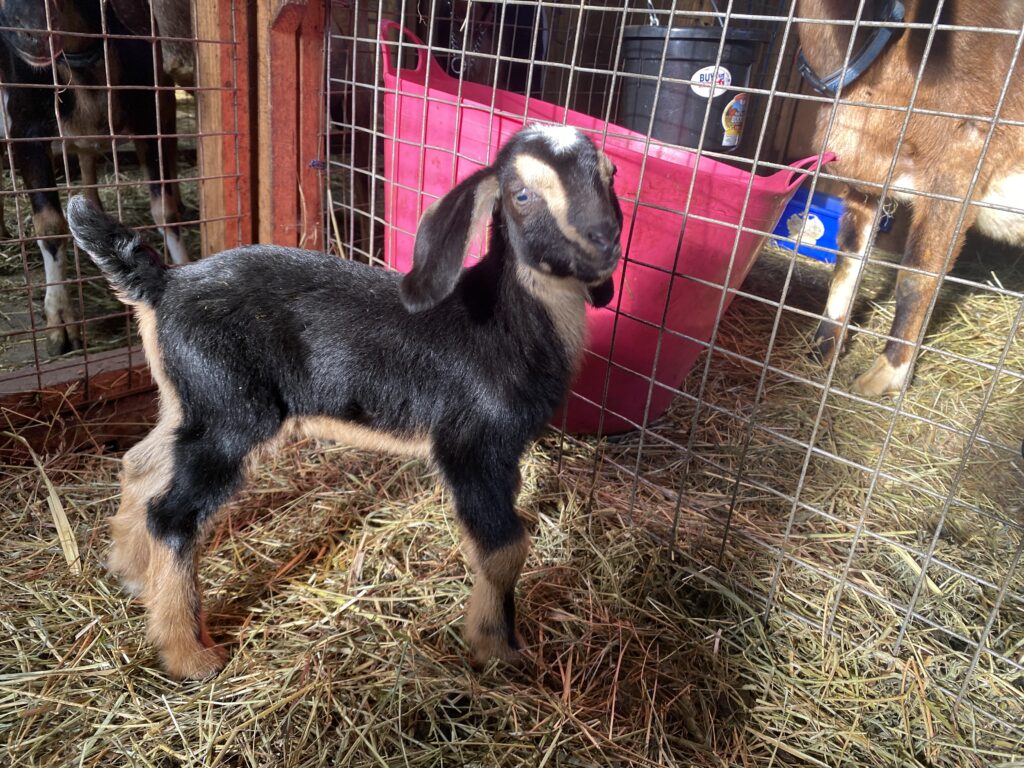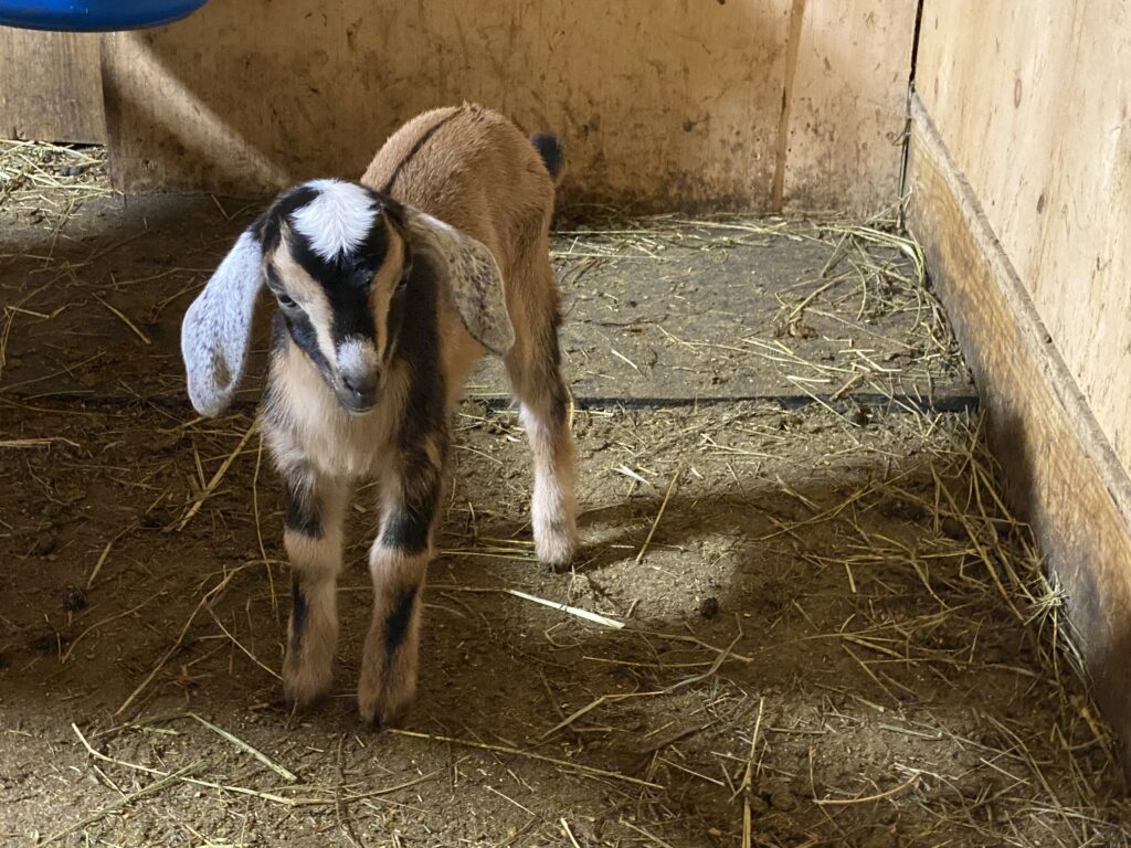 This is Desiree’s second son, who we call Atticus. She is a FF, so we are not offering her boys as breeding bucks. He has really pretty coloring. He’s very young in this picture. Updates coming soon.