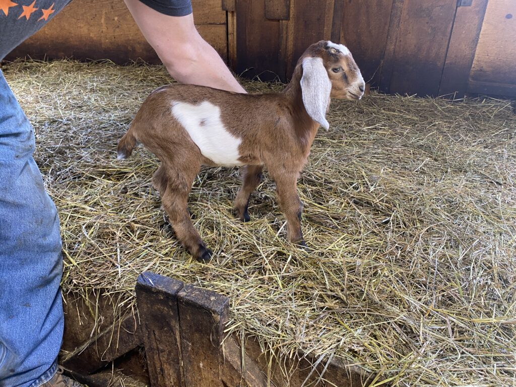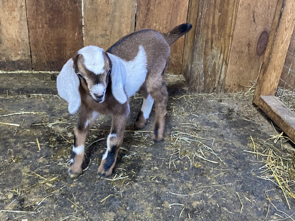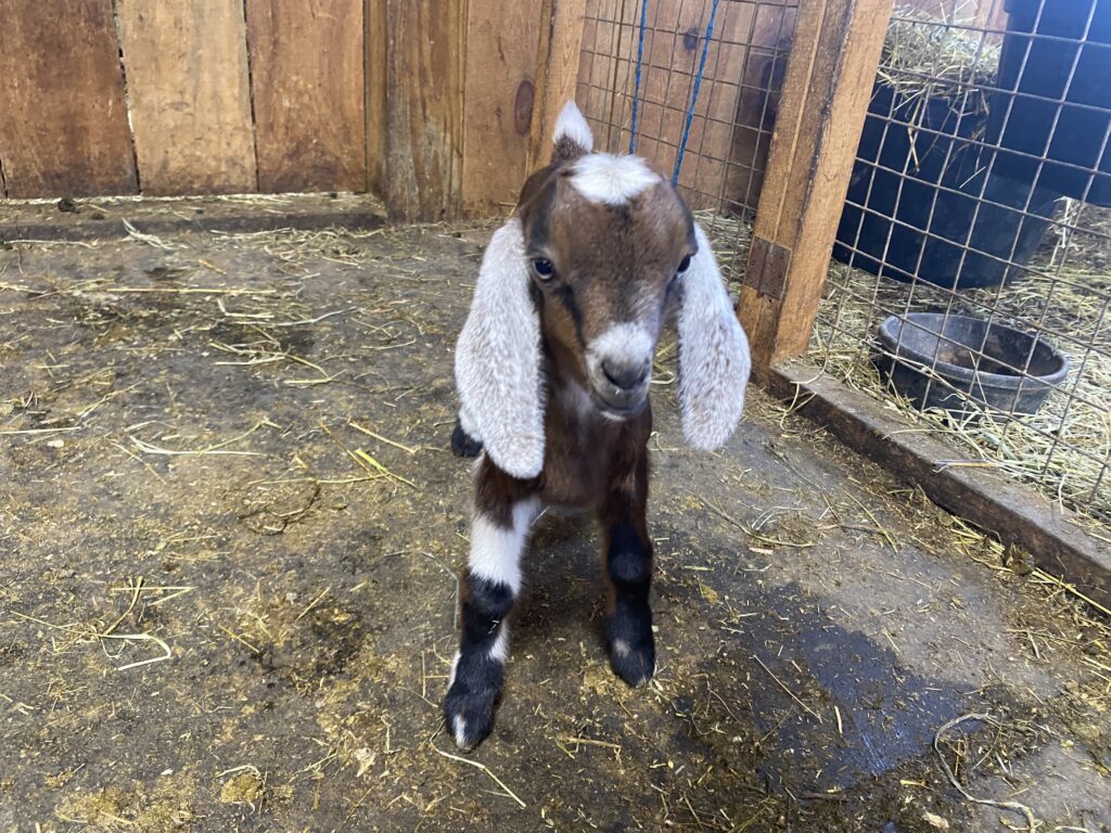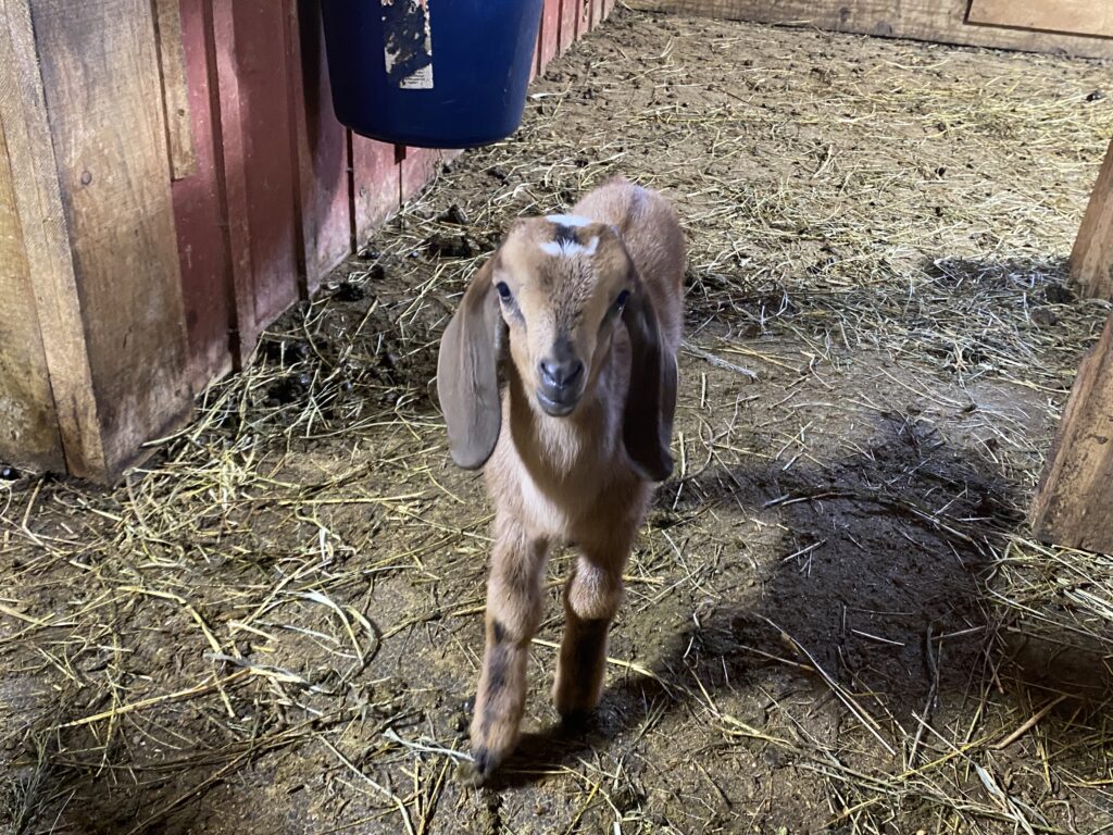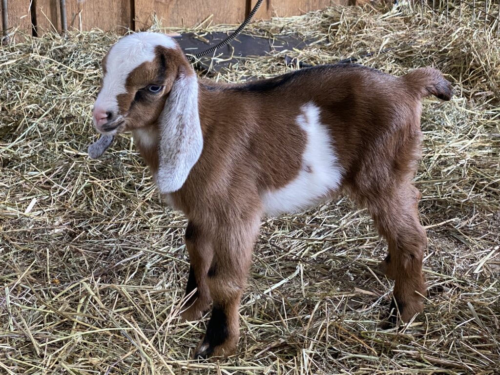 This is Desiree’s second son, who we call Atticus. She is a FF, so we are not offering her boys as breeding bucks. He has really pretty coloring. He’s very young in this picture. Updates coming soon.