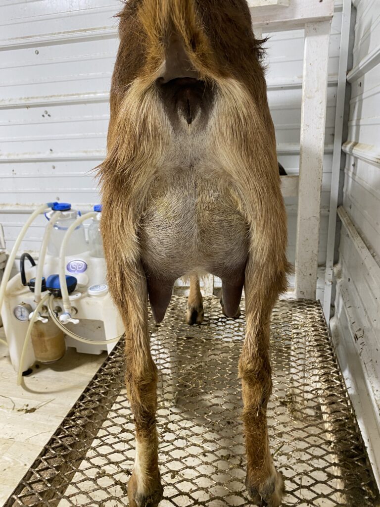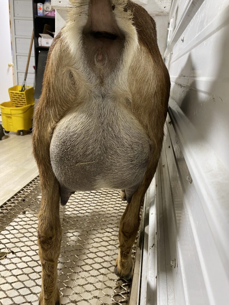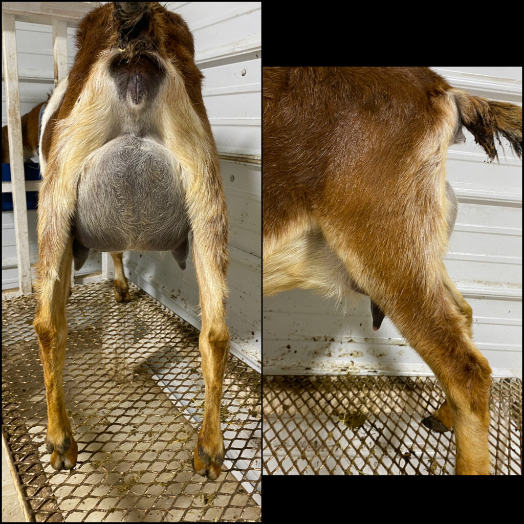 Twix’s dam (Wonderful Farm’s SG Royal Candy *P) and sire’s dam both are both heavy producers, as is Mazy’s dam. Please follow the links to parents provided ABOVE to see udder pictures. He is F3.