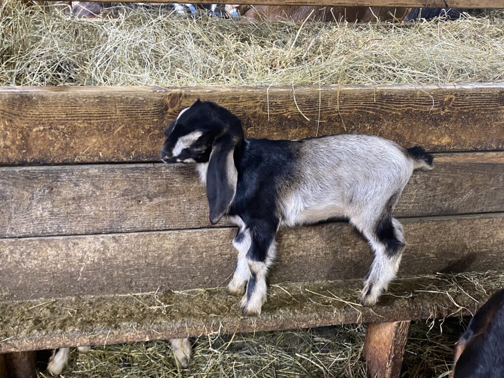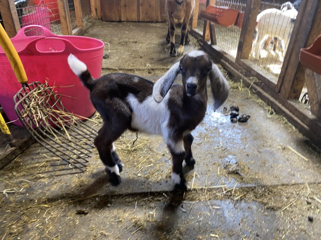 This is Black Currant. He is Poppy’s son, and though Poppy’s udder is fantastic for her size, we’re not confident in offering her boy as a breeding buck this year. He is a sturdy, large boy and will make a great pet or companion animal.