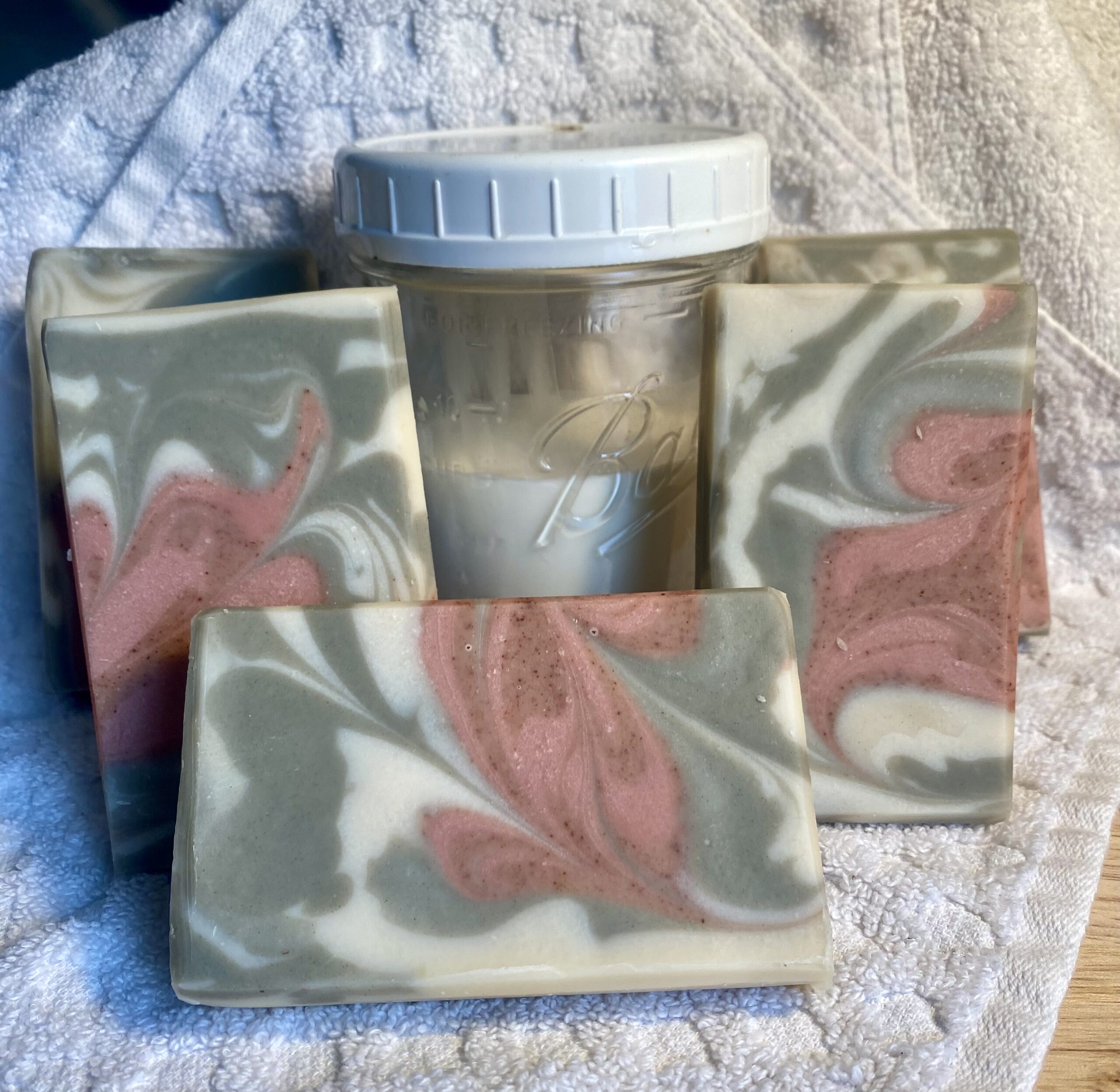 The green color in the soap is Dead Sea clay (there is no actual sage), and the flower colors are from madder root and rose clay. Clays offer an extra degree of cleansing, as well as the goat milk.