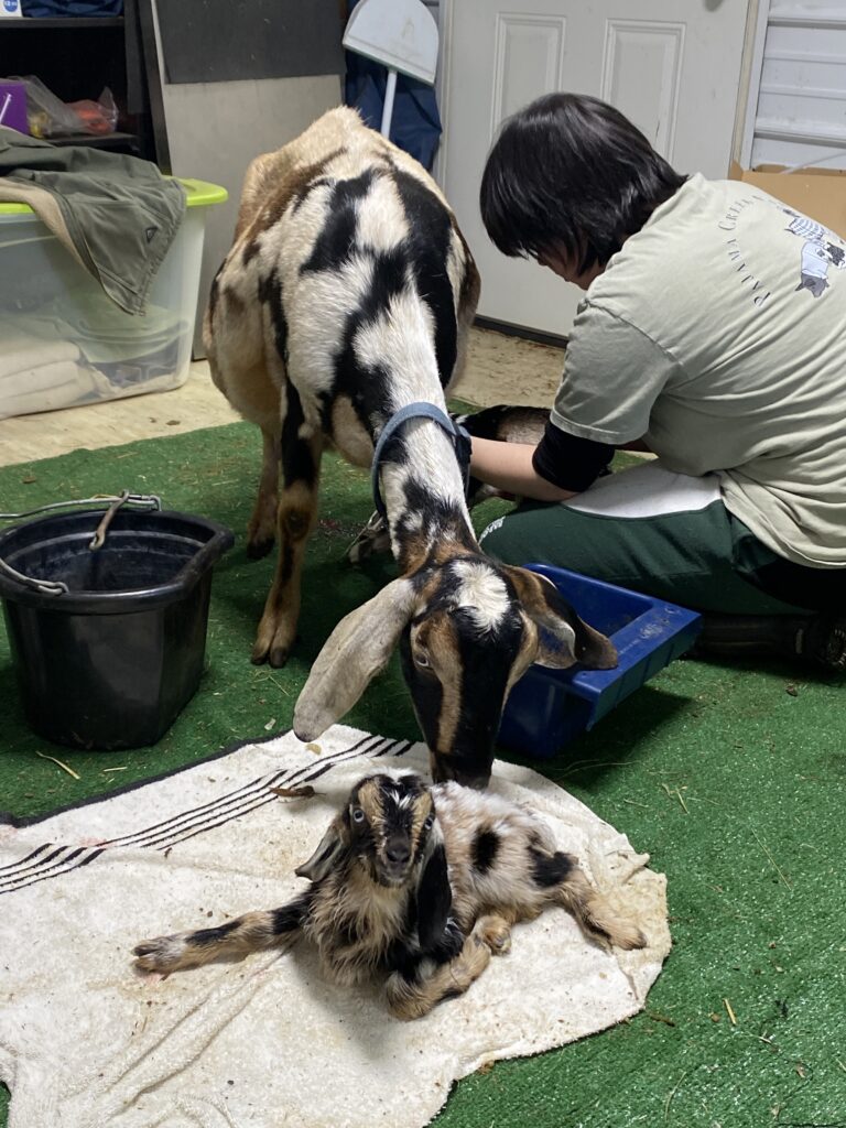 We were excited to breed Beauty in 2024 for 2025 kids. She freshened with a lovely udder on Feb 27, 2025, giving us two beautiful bucklings, and earned her milk star!