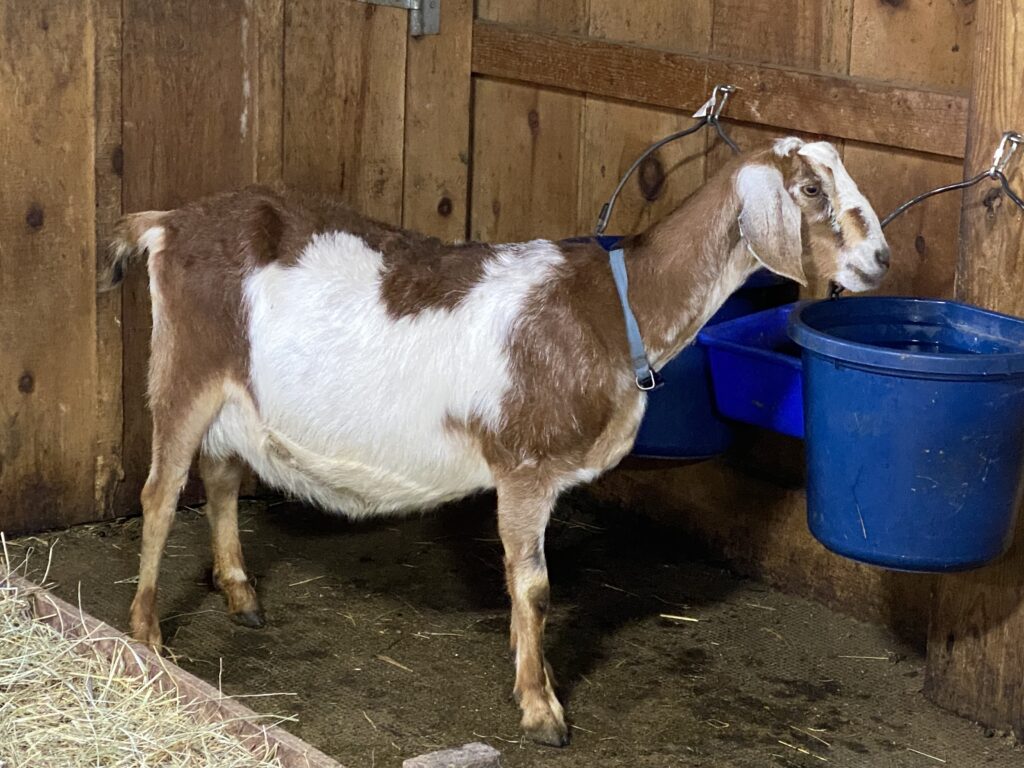 She was Green Gables SOF Snow Camo 3*P, an amazing doe with a practically perfect, productive udder. Cami sired our favorite buck, Green Gables E Asher *B, who sired Buckeye in the month that he passed away in the fall of 2022 of meningeal worm.