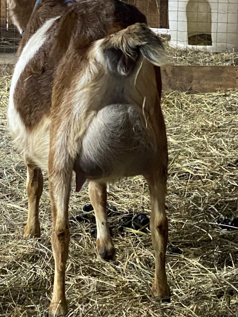 This is Honey’s beautiful pre-kidding udder. When we get her first 12-hour separation, we’ll update this picture.