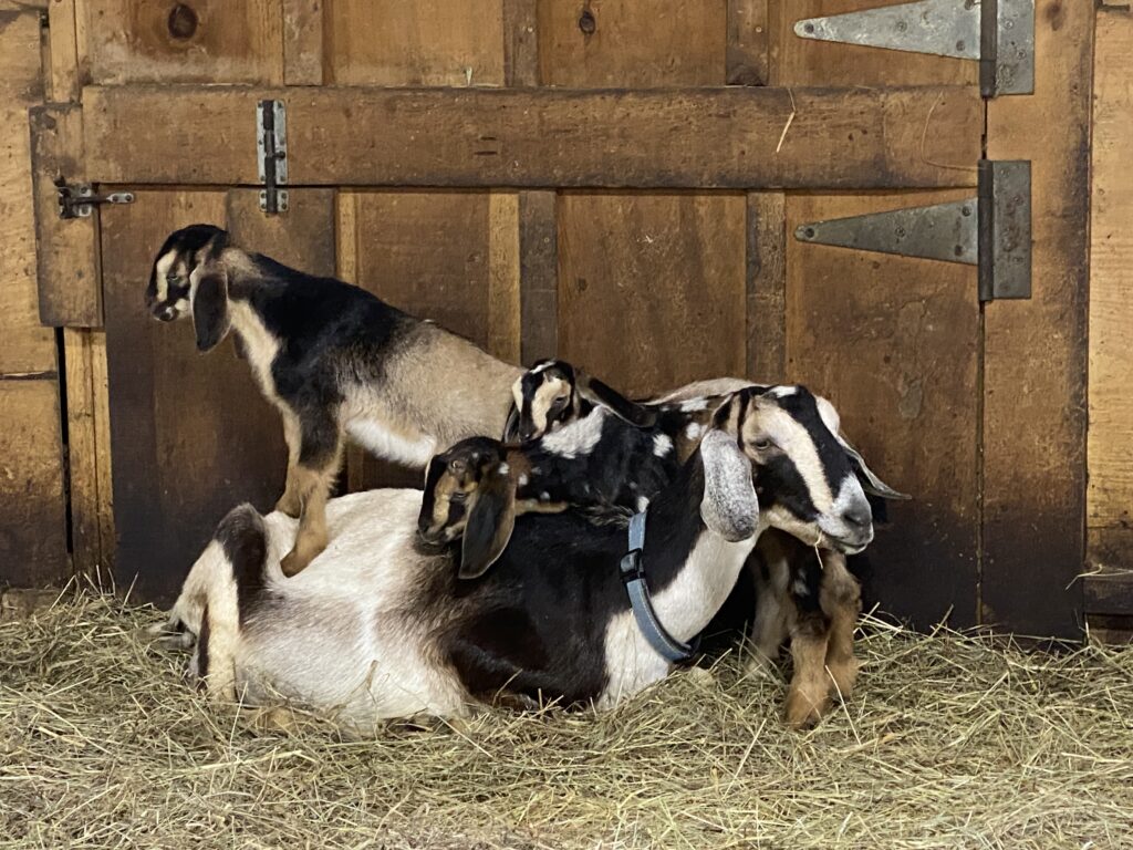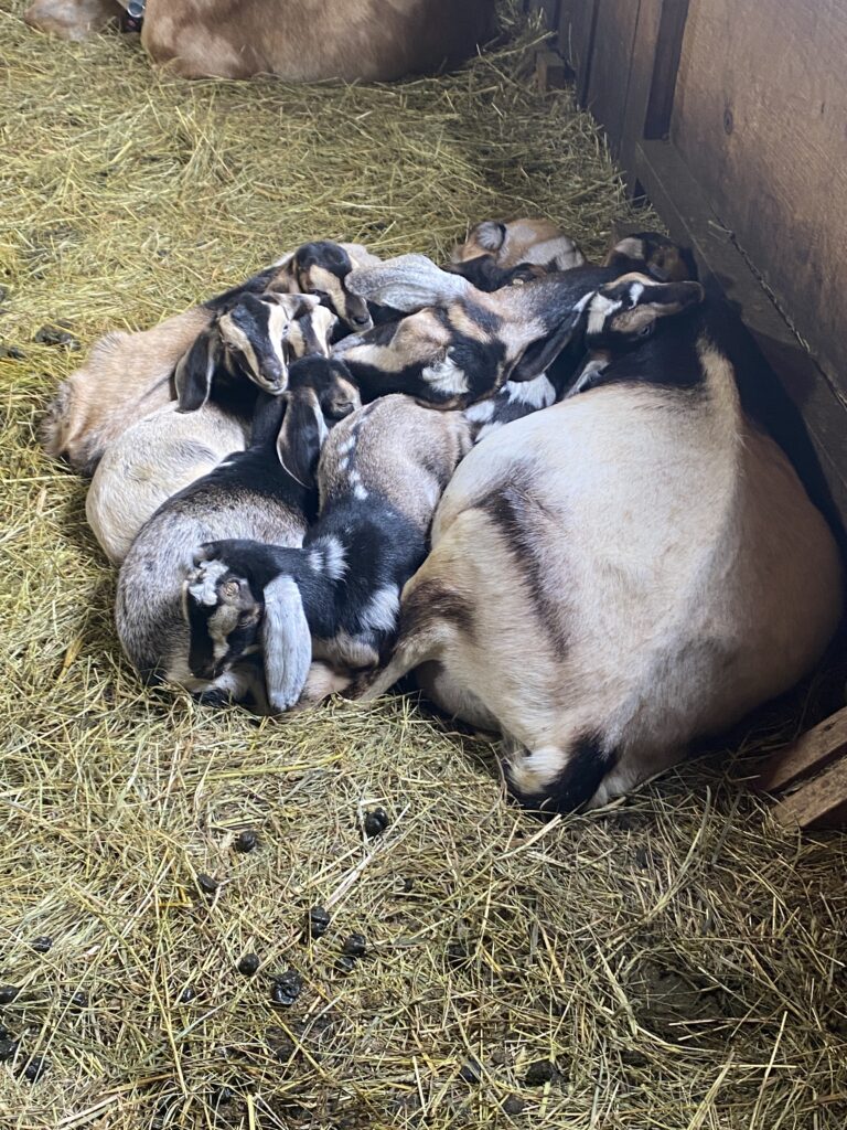 Champagne was paired with Green Gables AC Amazing Asteroid *B for this year. They produced triplets (two doelings and a buckling), which she has nursed effortlessly. Storybook’s Riesling (doeling) was retained. Shirley Temple (doeling) and Whiskey Sour (buckling) went off to bless other farms.