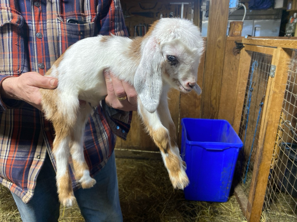 Rocket Man sired two litters for a total of six kids in 2026. He was bred to Storybook’s Creamy E’Claire (who had two doelings) and Storybook’s Sweet Lilac, who had quadruplets (3 bucklings and an adorable doeling, named Storybook’s Edelweiss.